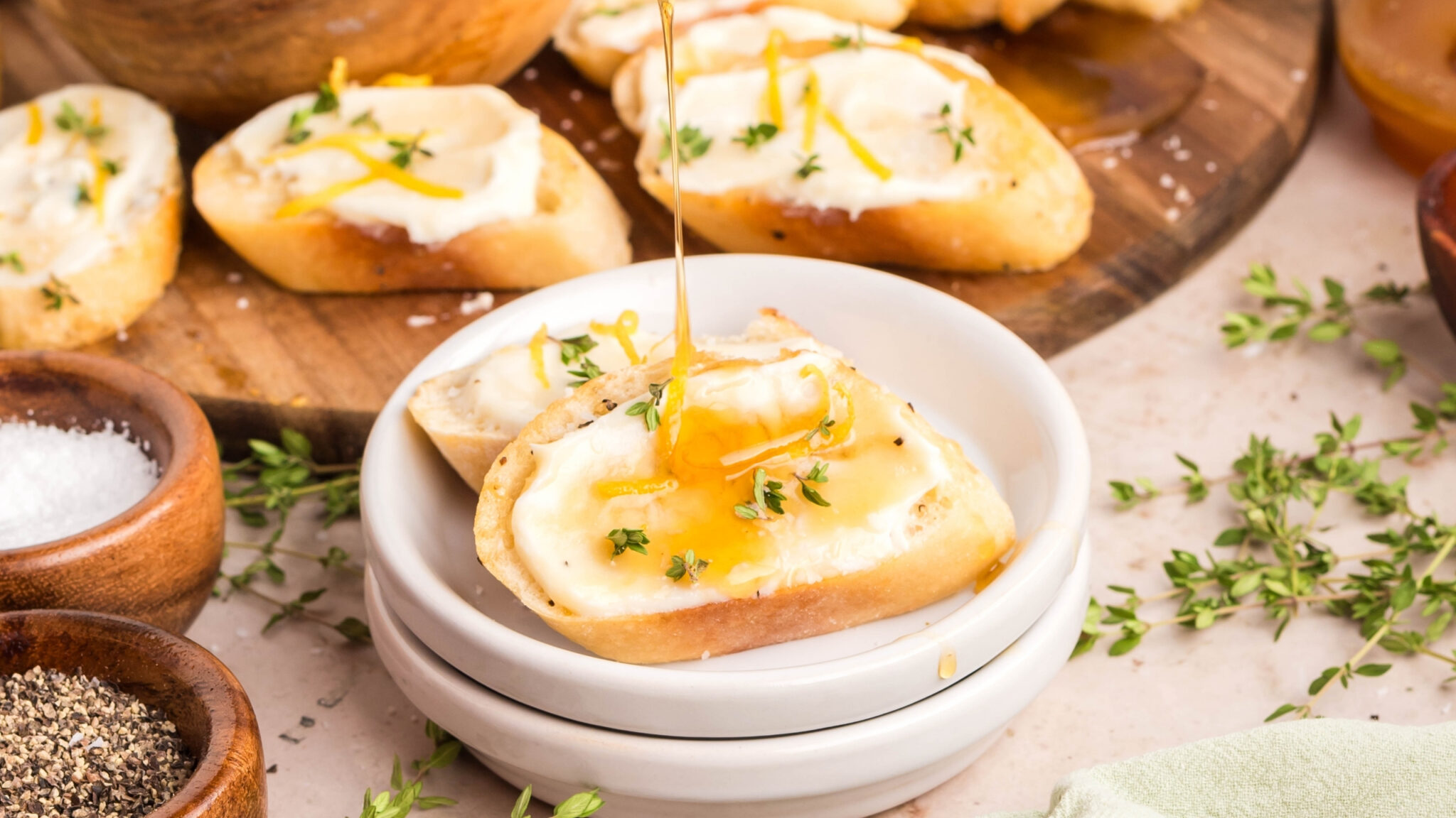 Not every weekday needs to start with reheated leftovers or dry toast. Here’s an easy upgrade that only sounds like something you’d order at brunch. Ricotta is whipped with lemon juice until light and spreadable, then spooned onto toasted bread and finished with honey, thyme, and a little zest. It takes 15 minutes from start to finish and still looks like you went out of your way. You can swap in rosemary, skip the honey, or pile on whatever fruit is trying to roll off your counter. Serve with pears, grapes, or whatever’s easiest to grab. It’s breakfast with range — not flashy, just unexpectedly good.