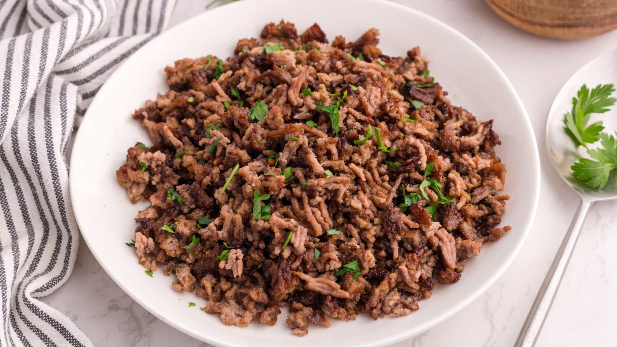 Most dinners start with defrosting something and immediately regretting it. This skips all that and gives you cooked, browned ground beef in just 20 minutes total. Mix one pound of beef with Worcestershire, garlic powder, pepper, and salt, then toss it in the air fryer in a few large chunks. Break it up halfway through so it browns evenly, drain off the grease, and it’s ready to serve or stash for later. It works for tacos, pasta, rice bowls, or any night when you need protein without another dirty pan. You can even scale it up for meal prep without hovering over the stove.