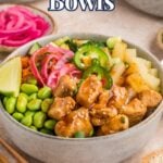 This Chicken Poke Bowl is a build-your-own dinner the whole family can get behind. Bite-sized chicken breast cooks in a soy pineapple sauce made with honey, ginger, sesame oil, lime, and a pinch of chili flakes, and the whole thing is on the table in about 30 minutes. Serve it over rice with edamame, cucumber, shredded carrots, pineapple, and pickled red onions piled on top, and let everyone build their bowl the way they like it. It's just as great for a weeknight dinner as it is for meal prep later in the week.