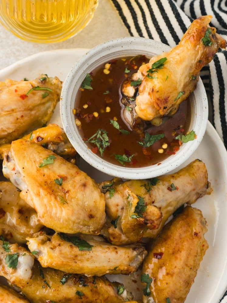 - Buffalo style: Toss the cooked wings in a mix of melted butter and hot sauce instead of the sweet chili glaze.